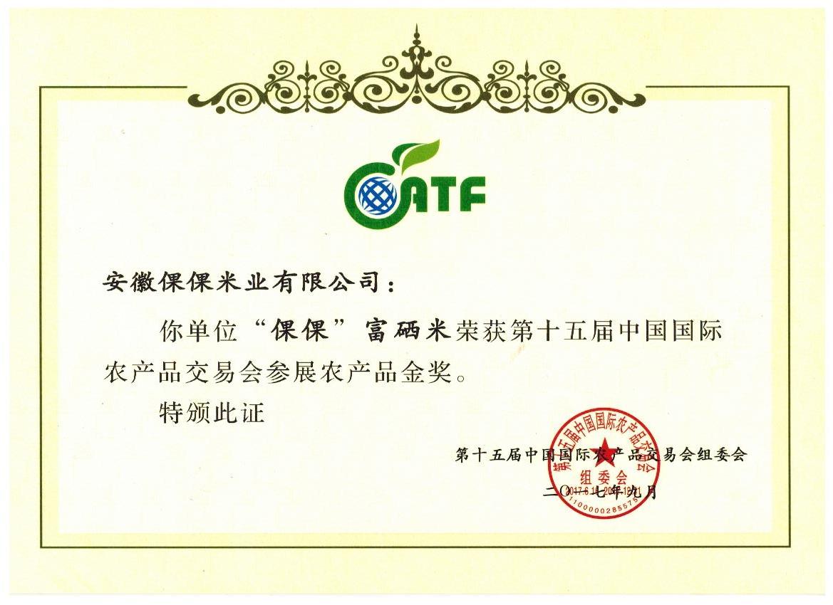 第十五屆中國國際農產品交易會金獎