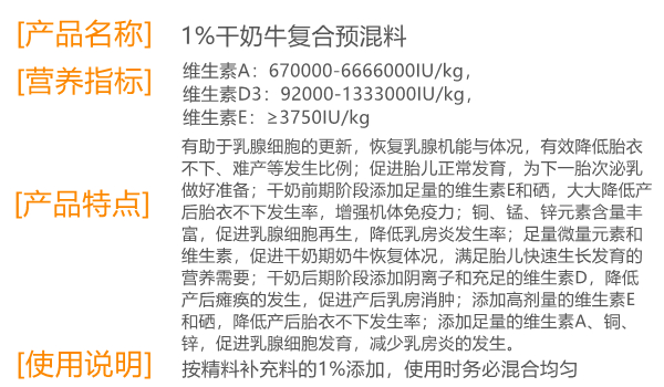 1%干奶牛復(fù)合預(yù)混料