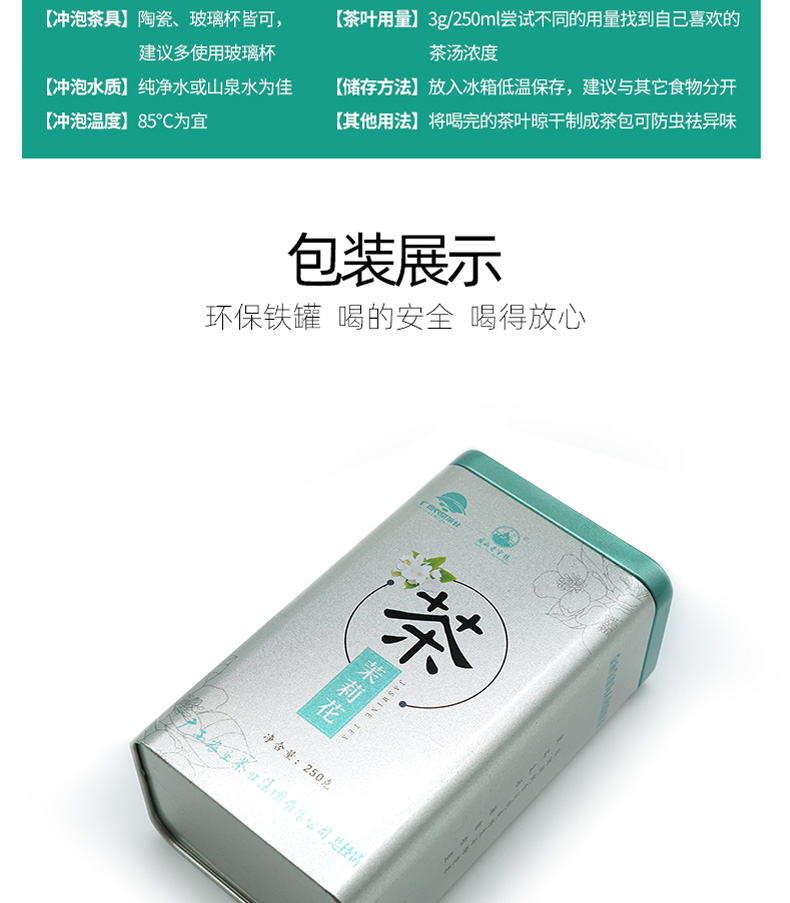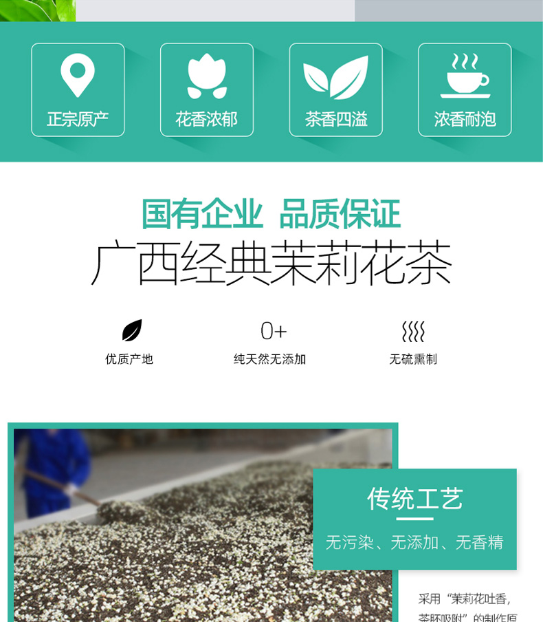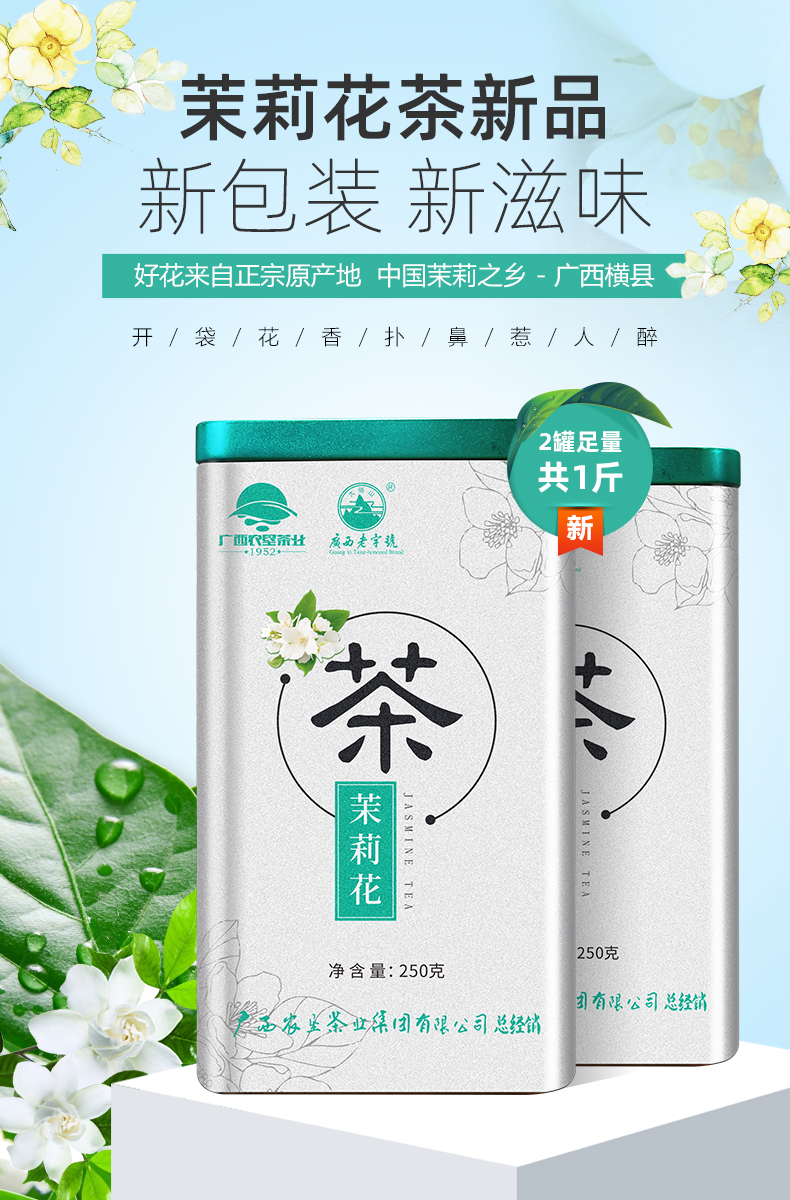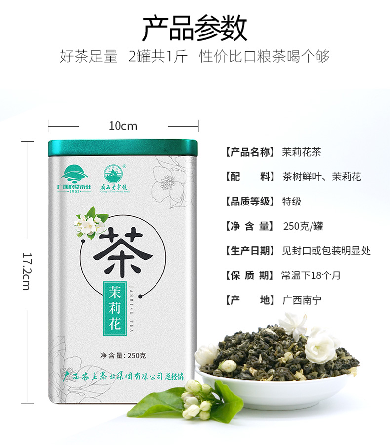 中國農(nóng)墾茉莉花茶特級茶葉茶干250g散裝茶葉罐裝茉莉花茶孕婦花茶 茉莉花茶